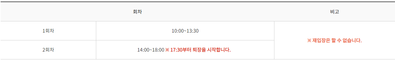 1회 차는 오전 10시부터 오후 1시 30분까지, 2회 차는 오후 2시부터 5시 30분까지 운영됩니다.