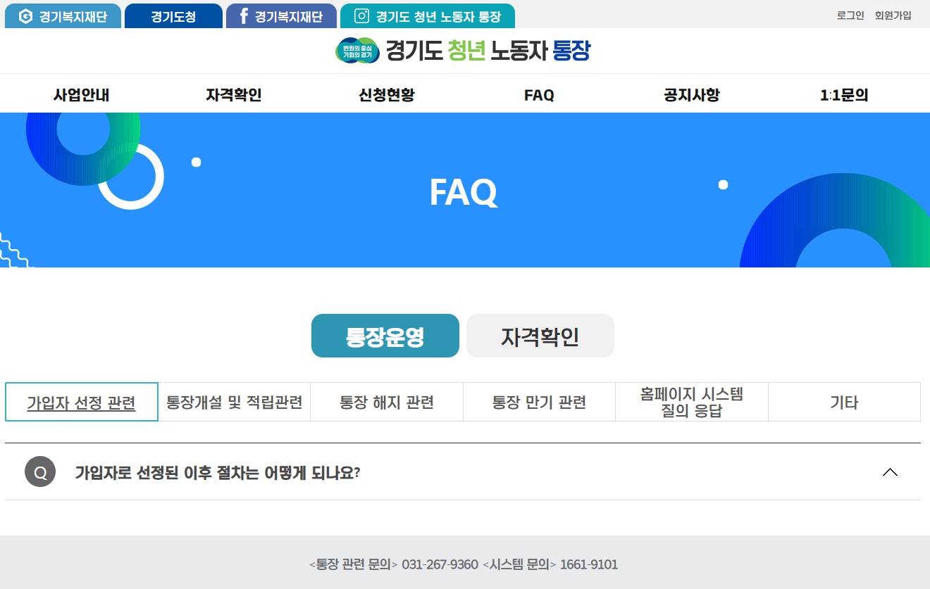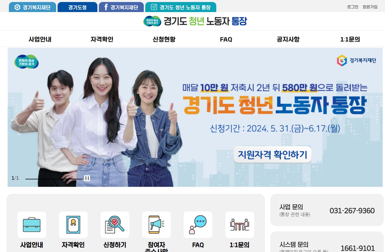 경기도 청년 노동자 통장 홈페이지 가기