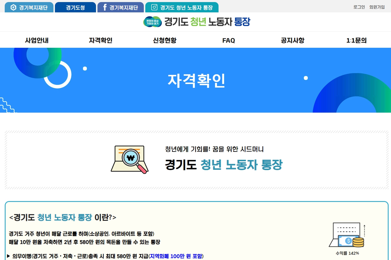 경기도 청년 노동자 통장 자격확인 하러가기