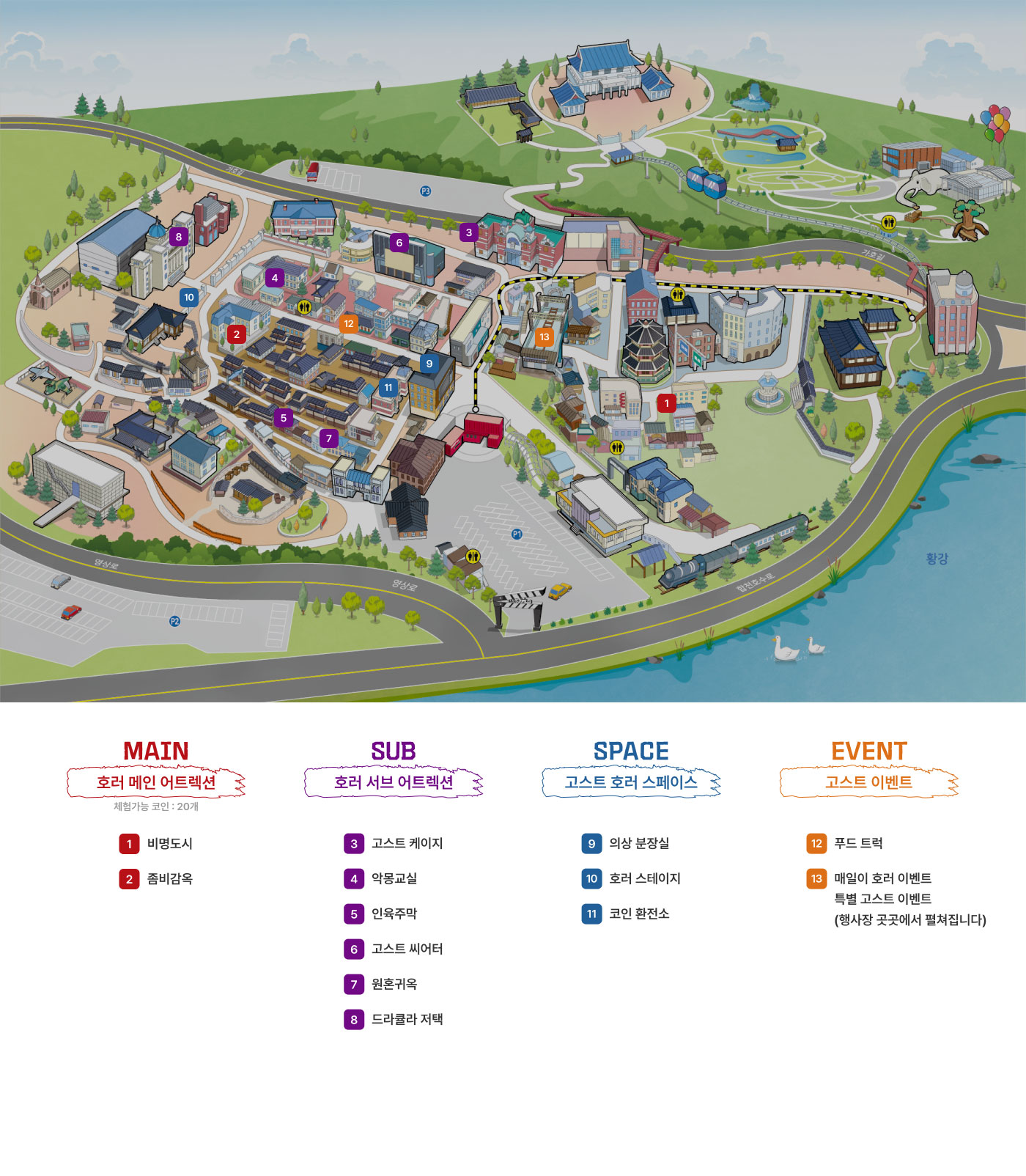 고스트파크 어웨이크는 넓은 행사장을 자랑합니다. 방문 전에 행사장 지도를 확인하고, 각 어트랙션의 위치와 일정을 파악해 두면 더 효율적으로 행사를 즐길 수 있습니다. 특히 인기 어트랙션은 대기 시간이 길 수 있으므로, 일정 조율이 필요합니다. - 어트랙션별 제한 사항 숙지