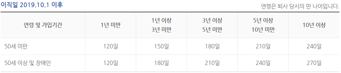 (이직일이 2019년 10월 1일 이전은 퇴직 전 평균임금의 50% x 소정급여일수)