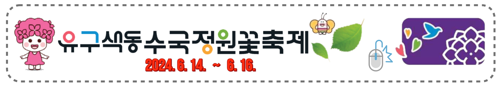 매년 여름, 수국이 만개하는 이 시기에 2024년 6월 14일부터 6월 16일까지 3일간 유구 색동수국정원 꽃축제가 열립니다. 수국정원 내에 다양한 포토존과 버스킹 공연, 가요제, 토크콘서트 등 흥미로운 프로그램이 진행됩니다.
