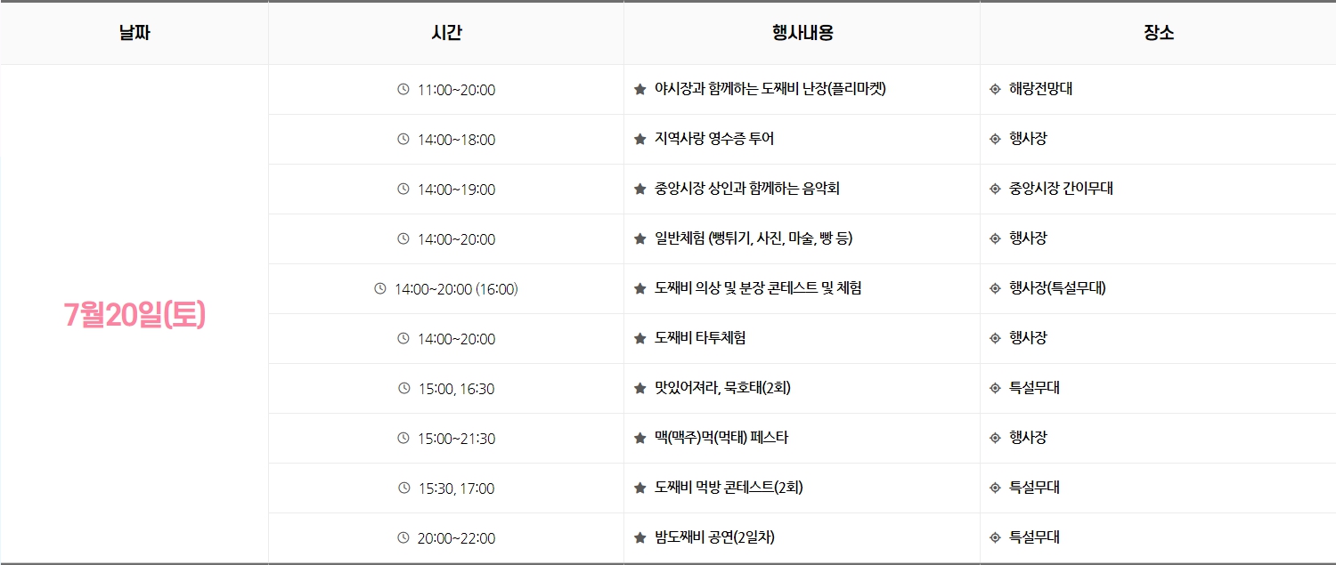 ▼ 아래는 도째비페스타 축제 일정이니 눌러서 확인하세요.
