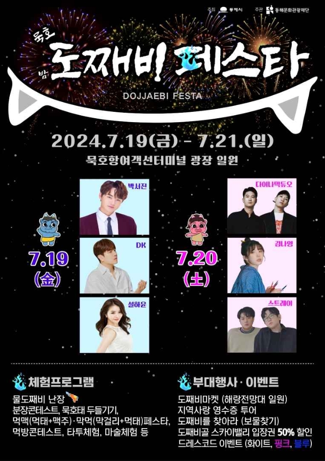도째비페스타는 강원특별자치도 동해시 일출로 22, 묵호항여객선터미널에서 열립니다.