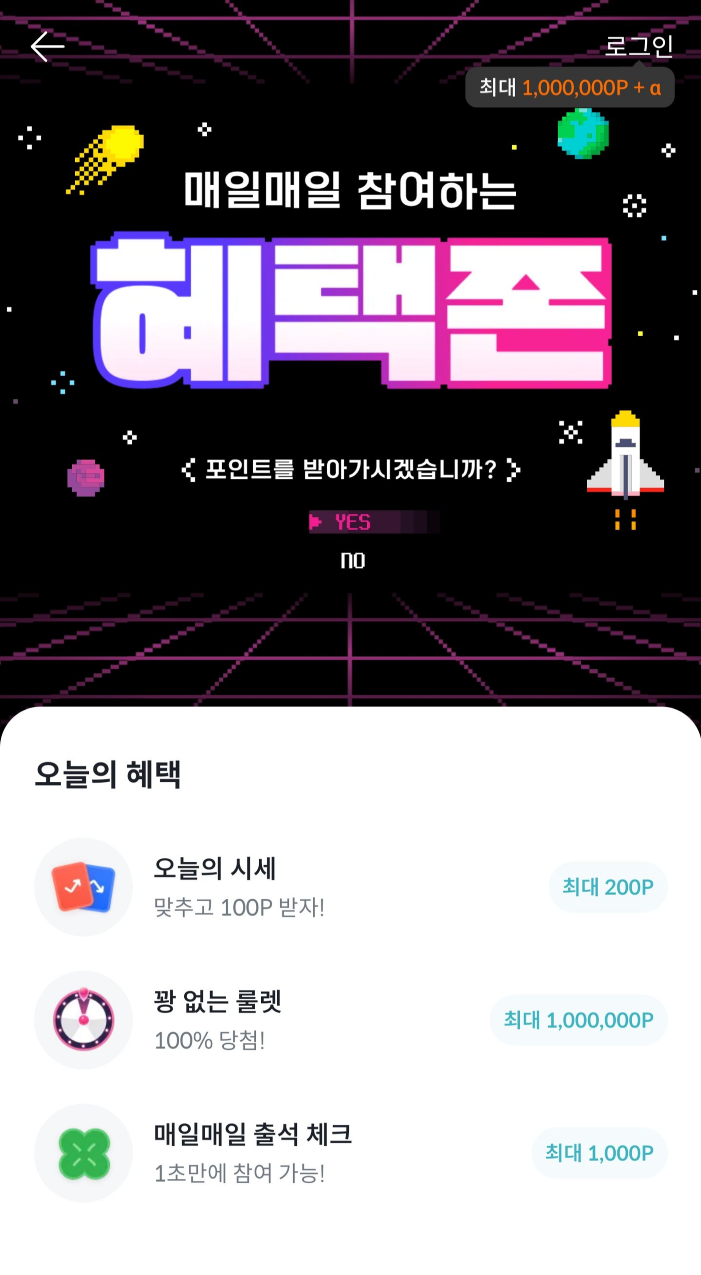 매일 룰렛을 돌리는 고객 중 10명에게 100만 포인트 혜택이 주어집니다.