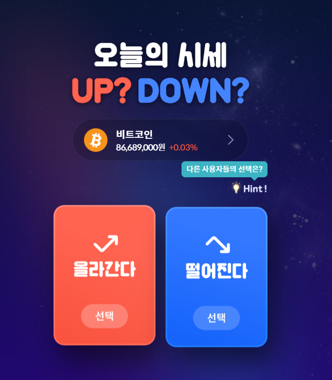 '오늘의 시세 맞추기'는 어제 종가보다 오늘 종가가 오를지 내릴지 예측하는 이벤트입니다.