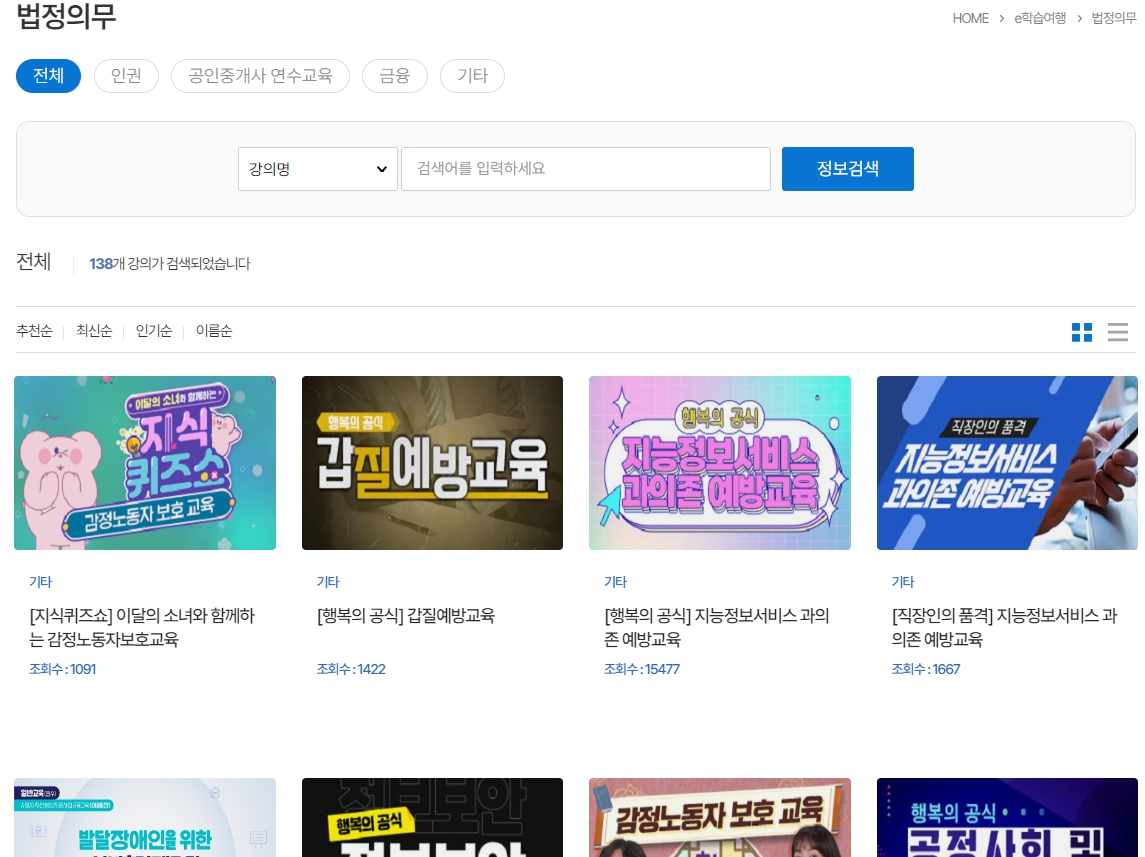 2. 서울시 평생학습 포털 법정/의무교육