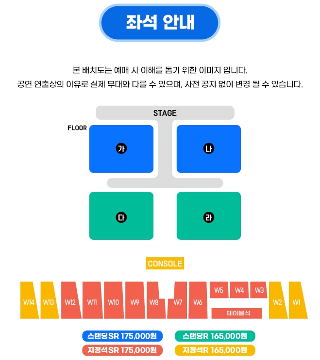 ※ 지정석S, 시야제한석은 지역에 따라 있거나 없을 수 있으니 참고하시기 바랍니다.