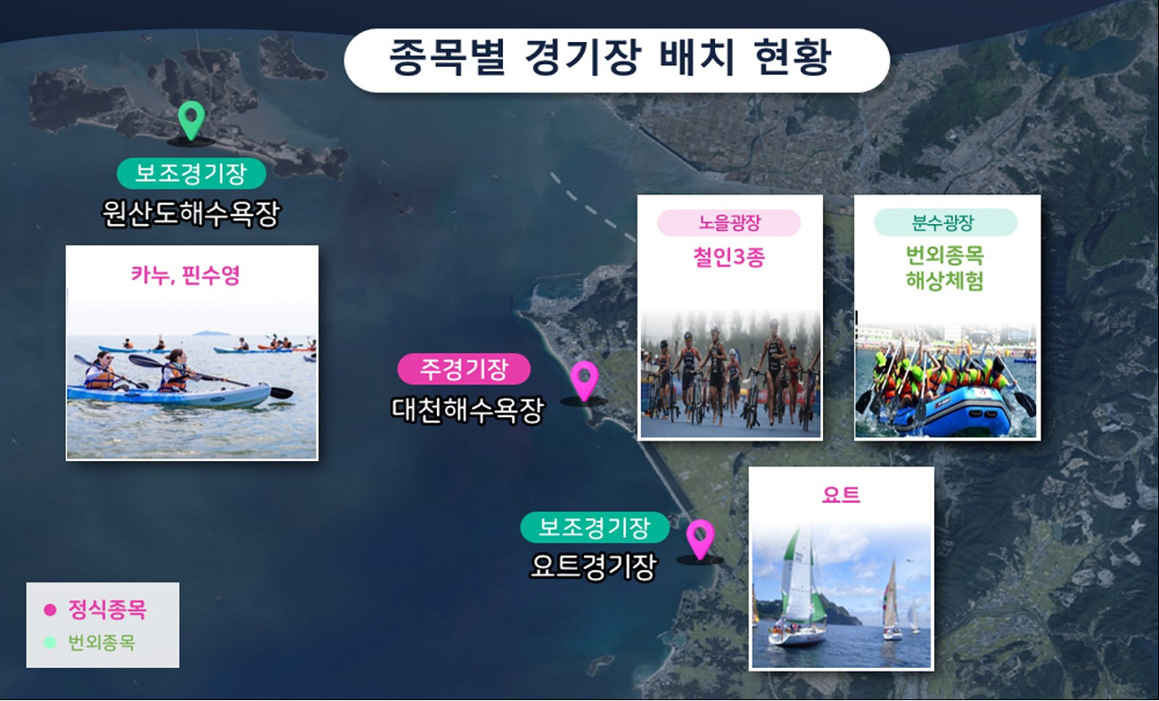 - 장소: 대천해수욕장, 원산도해수욕장, 보령요트경기장