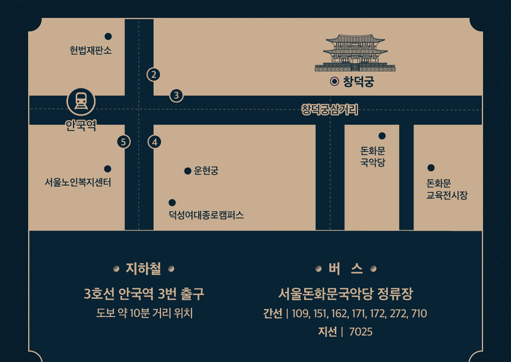 - 창덕궁까지 도보 약 20~25분 거리 또는 대중교통 연계 가능