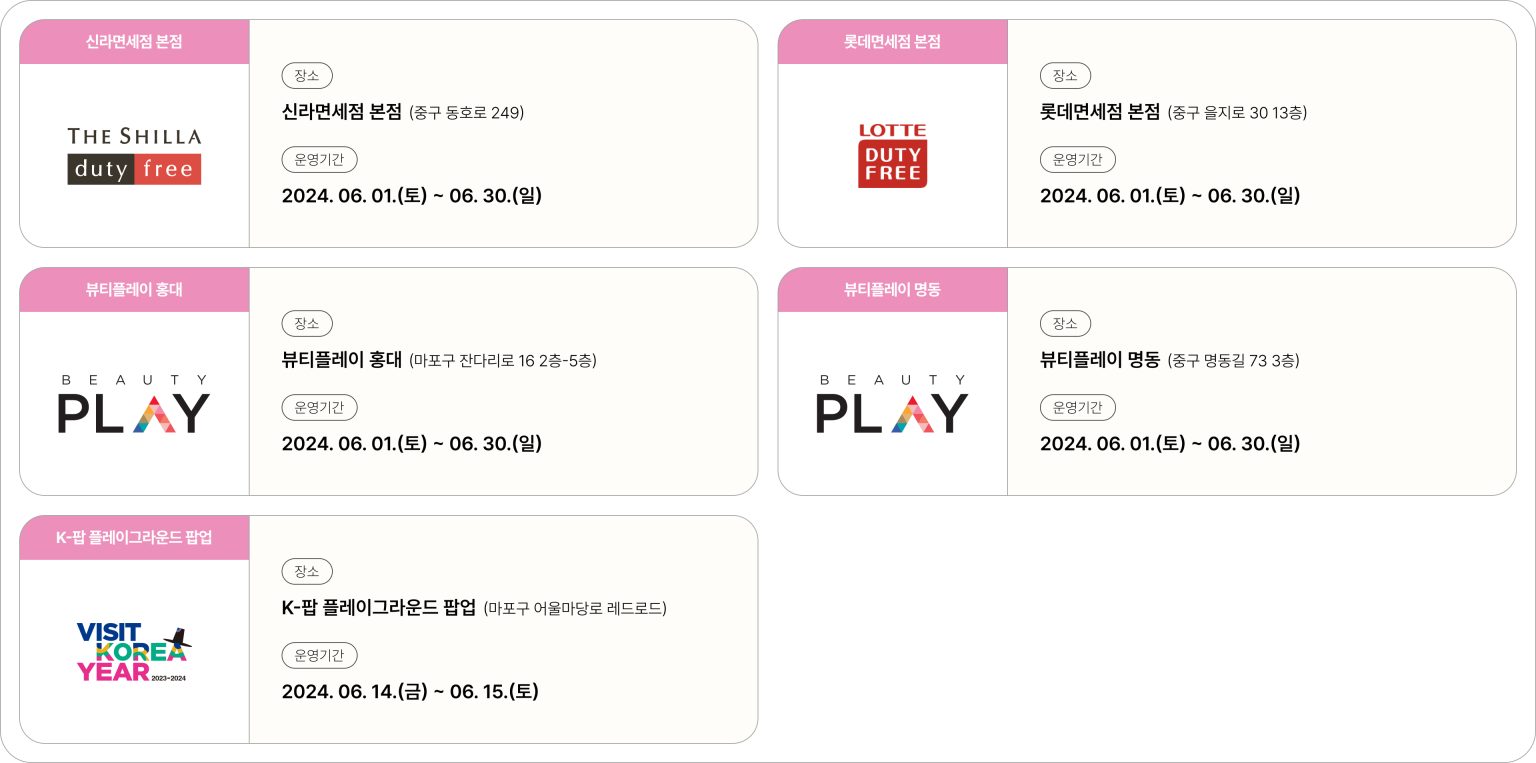 K뷰티 쇼핑과 다양한 경품 제공 - 강남 (6. 1.(토) ~ 6. 30.(일)