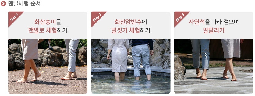 - 화산송이 맨발체험: 제주 화산송이 올레길을 맨발로 걸으며 여행에 지친 발의 피로를 풀고 건강도 챙길 수 있는 특별한 체험입니다.