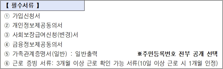 희망두배 청년통장 신청을 위해서는 몇 가지 필수 서류가 필요합니다. 중요사항 중 하나는 가족관계증명서 발급 시 주민등록번호 전부공개를 선택하여 준비하세요.
