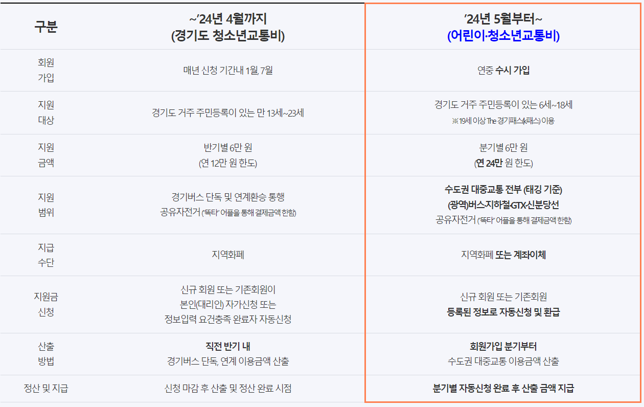 경기도는 만 13 ~ 23세 청소년을 위한 기존 교통비 지원을 확대하여 2024년 1월부터 4월까지 이용한 경기버스 요금을 지원합니다. 이는 7월에 신청할 수 있으며, 청소년들은 이를 통해 더 많은 혜택을 받을 수 있습니다.